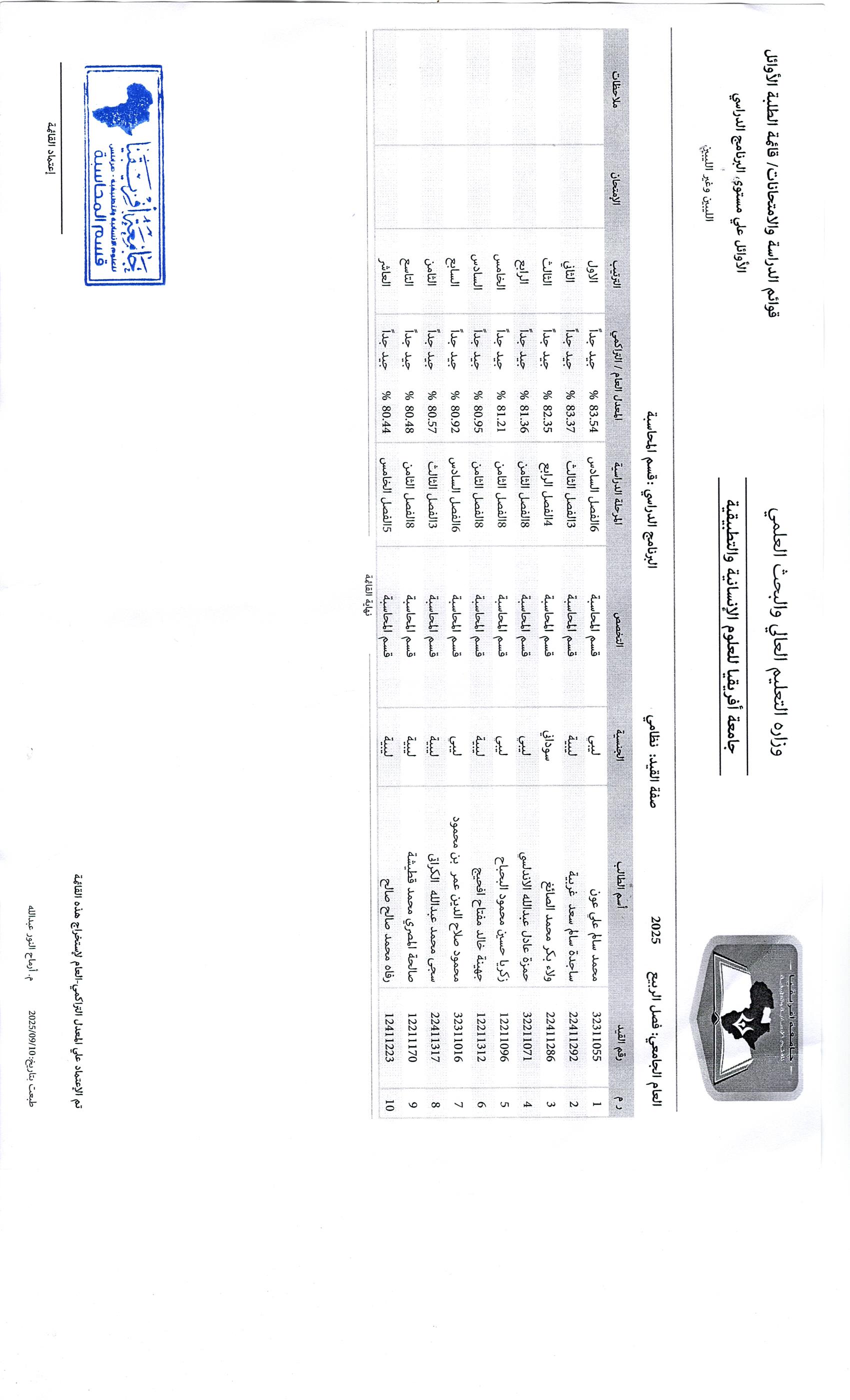 أبنائنا وبناتنا الطلاب والطالبات المدرجين في لائحة الشرف للفصل الدراسي ربيع 2025.